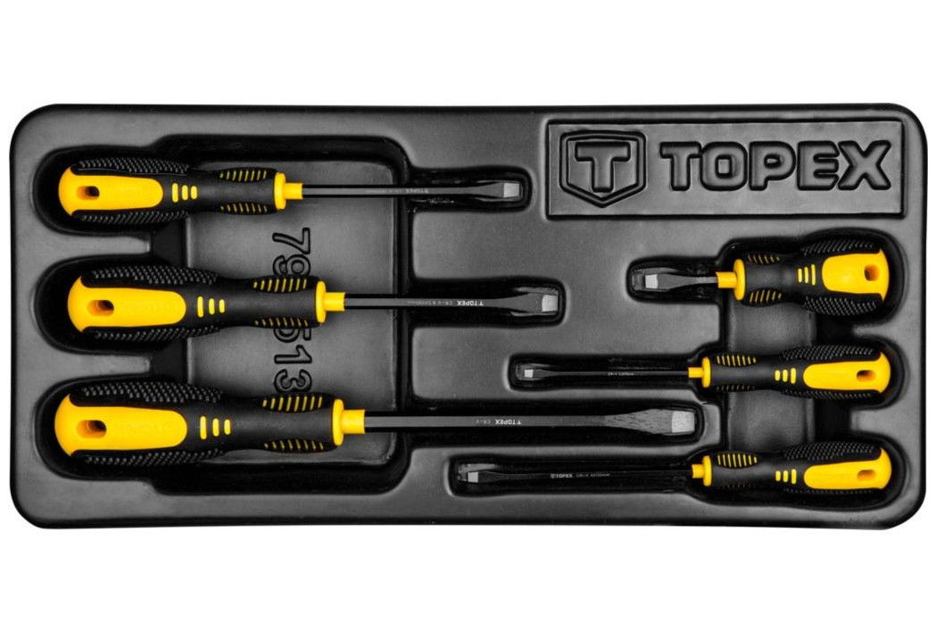 Topex 79R513 lapos csavarhúzó készlet, CrV acél, 6 részes